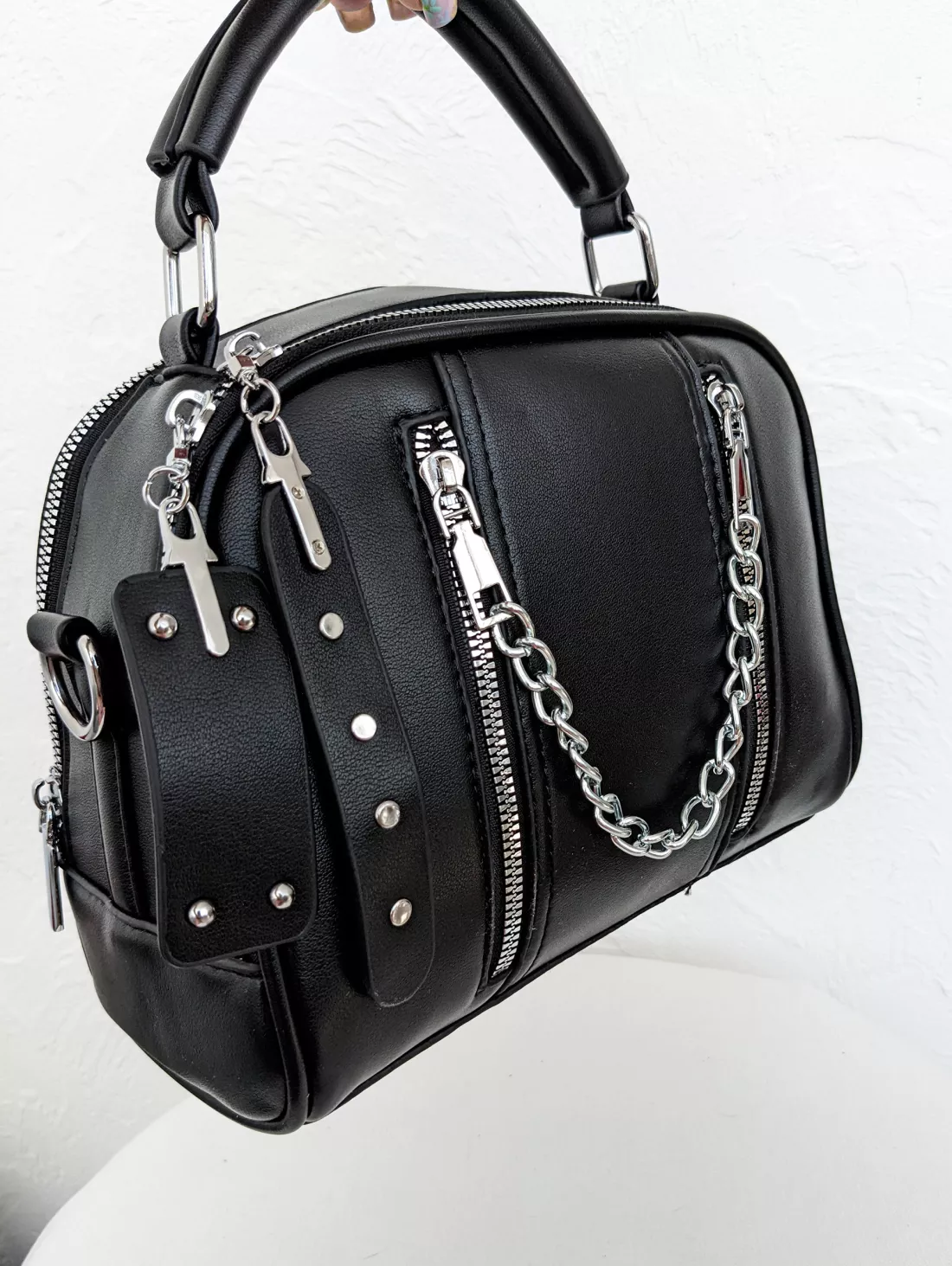 Стильна жіноча сумка з екошкіри з декоративними ланцюжками — сучасна модель, яка гарно доповнить повсякденний образ.